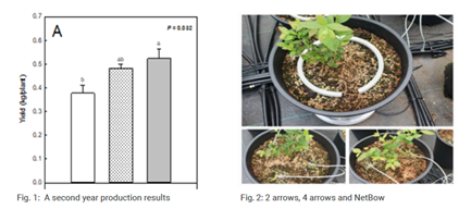 在基质栽培蓝莓上应用三种不同的灌水器方式,比较他们对蓝莓生长和产量的影响。