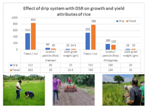 全球90%的水稻产在亚洲,其中绝大部分都是采用水田种植方式,耗费大量的水资源,同时产生温室气体。在菲律宾和越南开展的滴灌水稻直播试验,实现了大幅度的水资源与劳动力的节约,同时维持了跟传统方式同水平的产量。