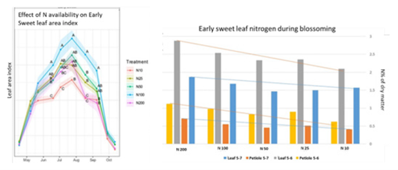 在两个鲜食葡萄品种上,采取9组不同营养方案的对照处理,以验证不同肥料施用量下,对作物生长,光合作用,产量等方面的影响。