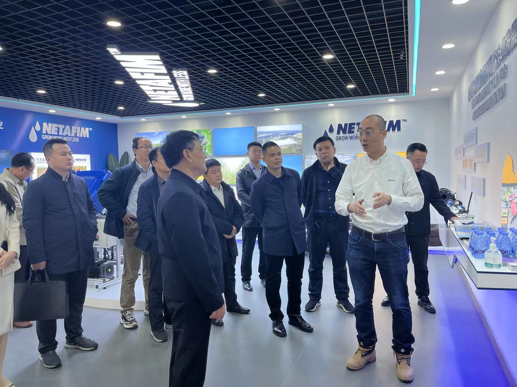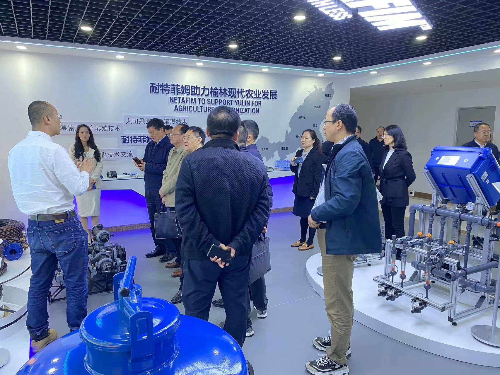 而在随后的耐特菲姆榆林展厅的参观交流中,张主席进一步了解了耐特菲姆公司历史、针对榆林市场旱作农业现状,耐特菲姆提供的具体的解决方案、以及具体的产品优势,并和耐特菲姆总经理聂宗雨领衔的管理团队亲切交流。