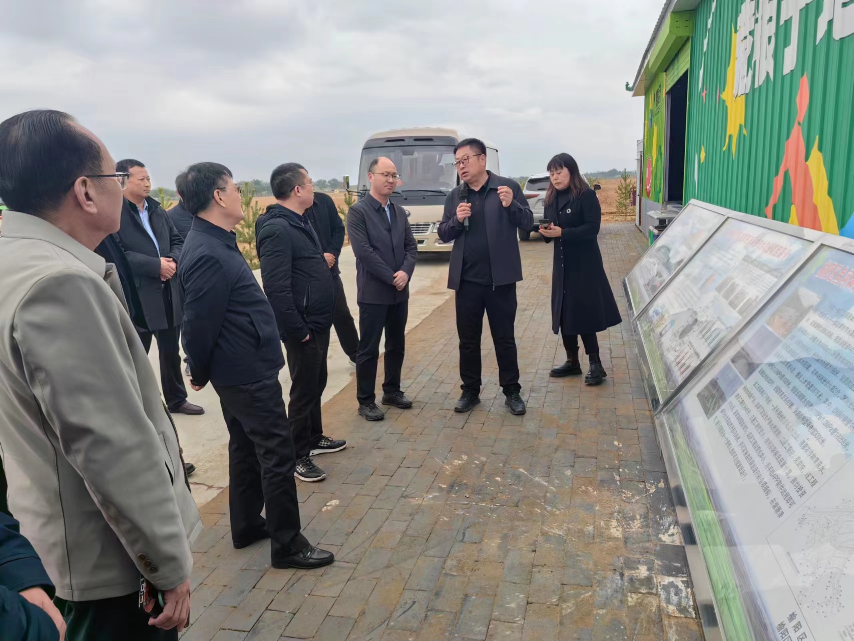 在项目地现场,大地集团副总经理苗志栓向张主席介绍了高效旱作节水项目开展情况及成效,依托智能水肥一体化系统,实现灌溉自动化、水肥精准化、操作远程化。并向张主席一行详细介绍了 智能灌溉系统构成,以及相比于传统灌溉方式所带来的省水、省肥、省工等优势。