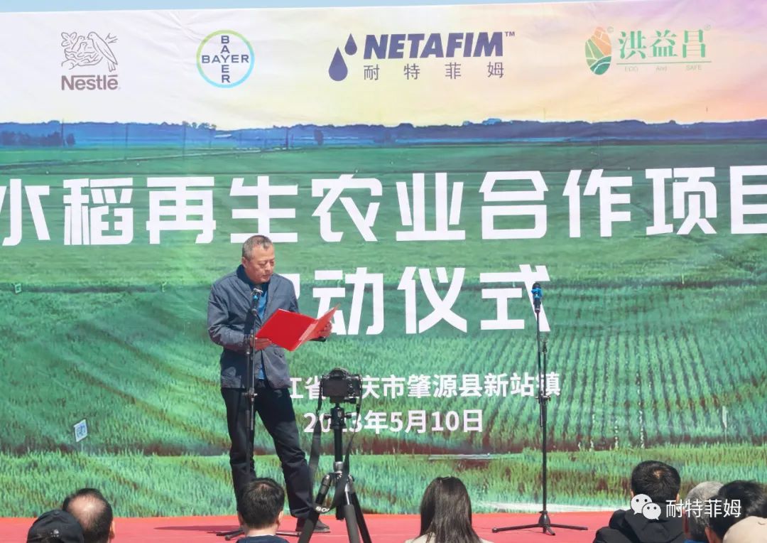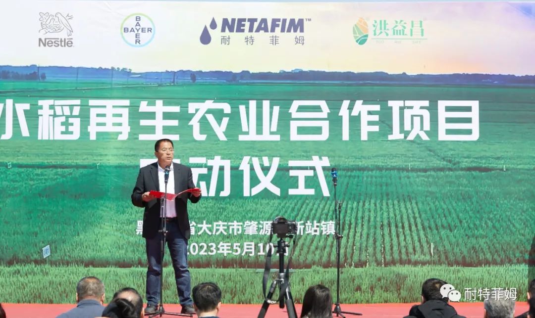 配图:在黑龙江各级政府领导见证下,拜耳中国公共与政府事务及可持续发展总监魏雨钊、雀巢大中华大区可持续总监张琦与耐特菲姆亚太区农艺总监Ran Yifa,洪益粮食种植专业合作社负责人王洪波共同启动项目