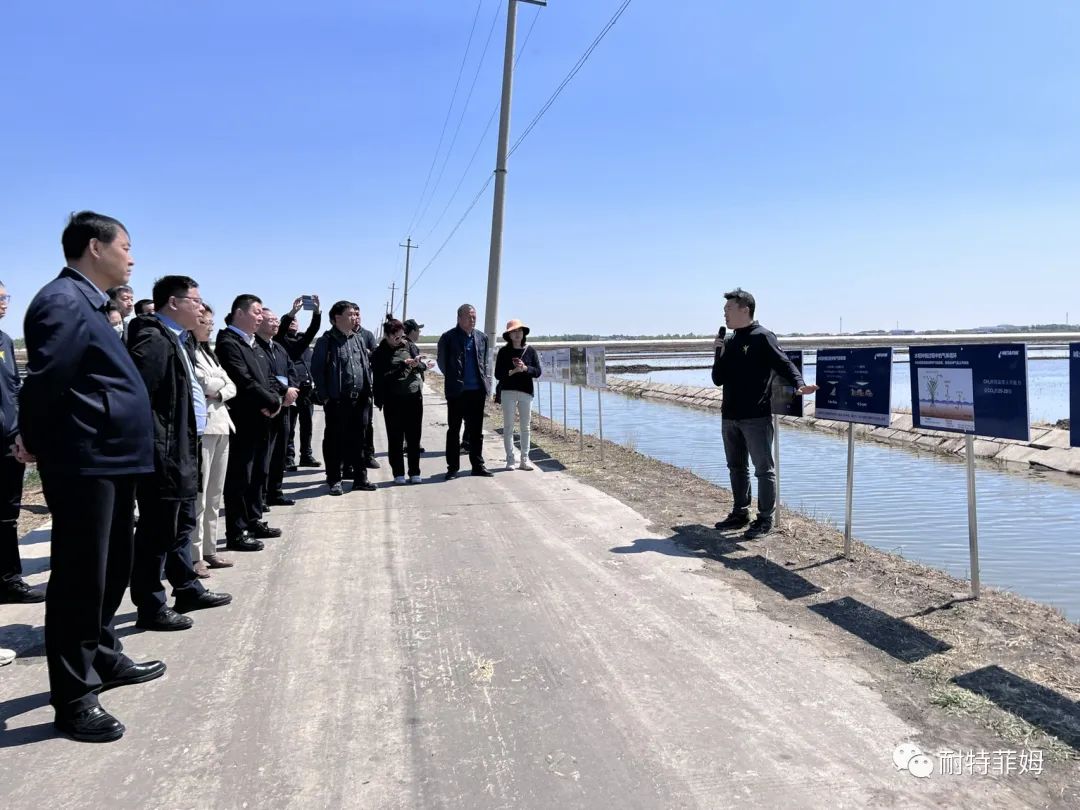 配图:参会领导详细了解在水稻上应用滴灌技术所能带来的益处