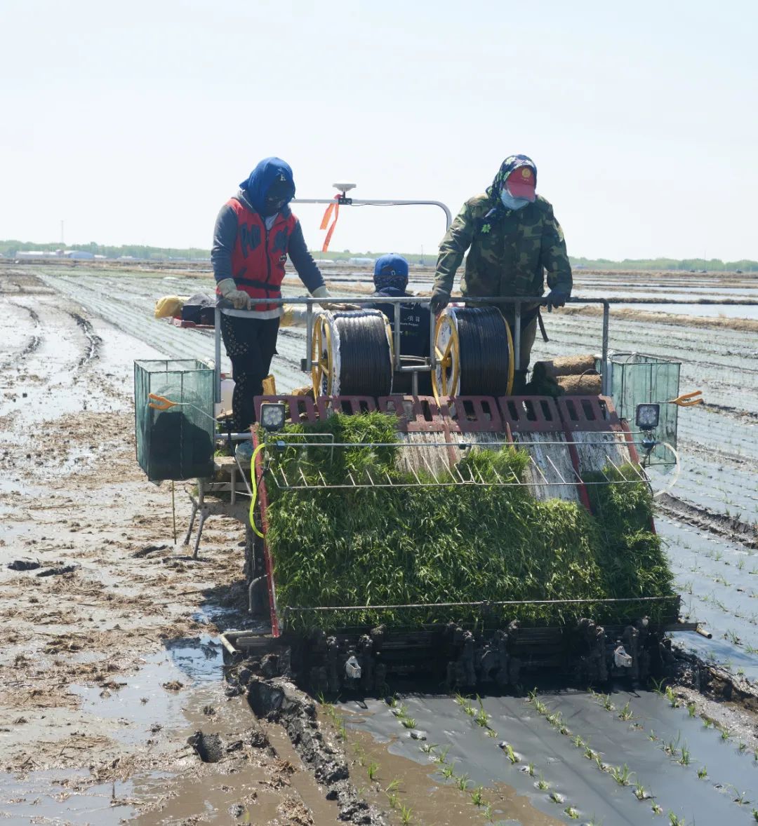 配图:洪益粮食种植专业合作社春耕农事操作:覆膜插秧滴灌一体